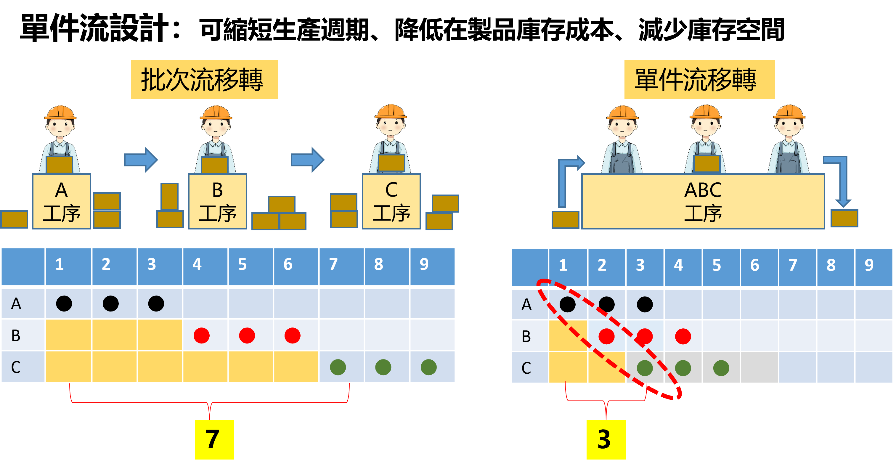 3. 降低在製品庫存 4.縮短生產週期